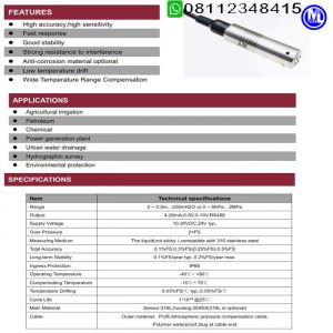 Range : 0~0.5m...200mH2O or 0~5KPa...2Mpa